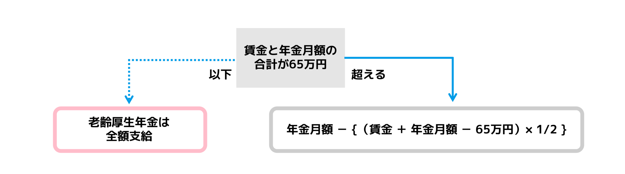 賃金と年金の合計が65万円以下なら年金を全額受給